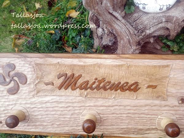 En este hemos puesto una inscripción , Maitenea , en pergamino, encima de los colgadores