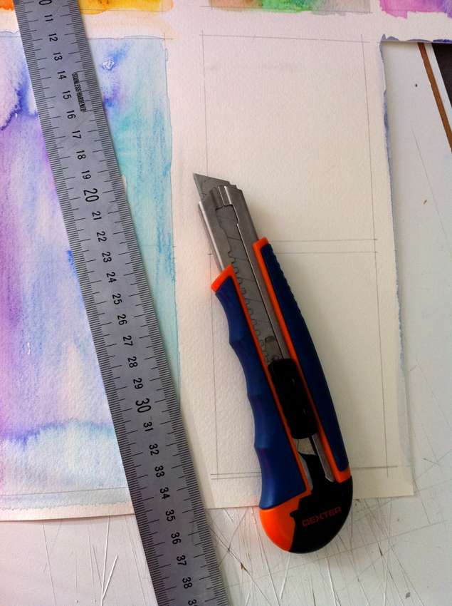 Nosotras vamos a personalizar nuestra libreta con acuarelas, así que necesitaremos la ayuda de un cúter y una regla para cortar a medida.