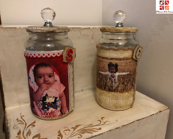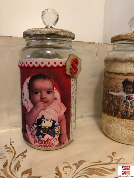 Hoy vengo con otro encargo que he hecho este verano, Patricia volvió a confiar en mí y me propuso tunear dos tarros de cristal con los nombres de sus niñas: Claudia y Sofia, ya que quería regalárselos a su madre, la decoración la dejó a mi gusto, algo que siempre agradezco ya que te deja crear con total libertad y pensando como podría dejar bonitos estos tarros se me ocurrió personalizarlos con fotos de sus hijas.