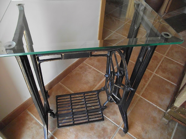 Pero en una de nuestras excursiones al mercadillo semanal de Estremoz (la semana pasada dediqué el post a este mercado, lo podéis ver AQUÍ) pasamos por Borba, otro pueblecito portugués repleto de tiendas de antigüedades y velharias. Y fue en un almacén de Borba donde encontré este pie de máquina de coser. Estaba a la intemperie, en un terreno encharcado, lleno de óxido y de barro y el dueño del almacén nos pidió ¡¡15 â?¬!! con la condición de que nos metiésemos nosotros en el charco a por él. Y ¡vamos que si nos metimos!, hasta un plástico tuvimos que extender en el maletero para que no lo pusiera todo perdido de lodo, agua, óxido y restos de pintura que se descascarillaba al rozar.