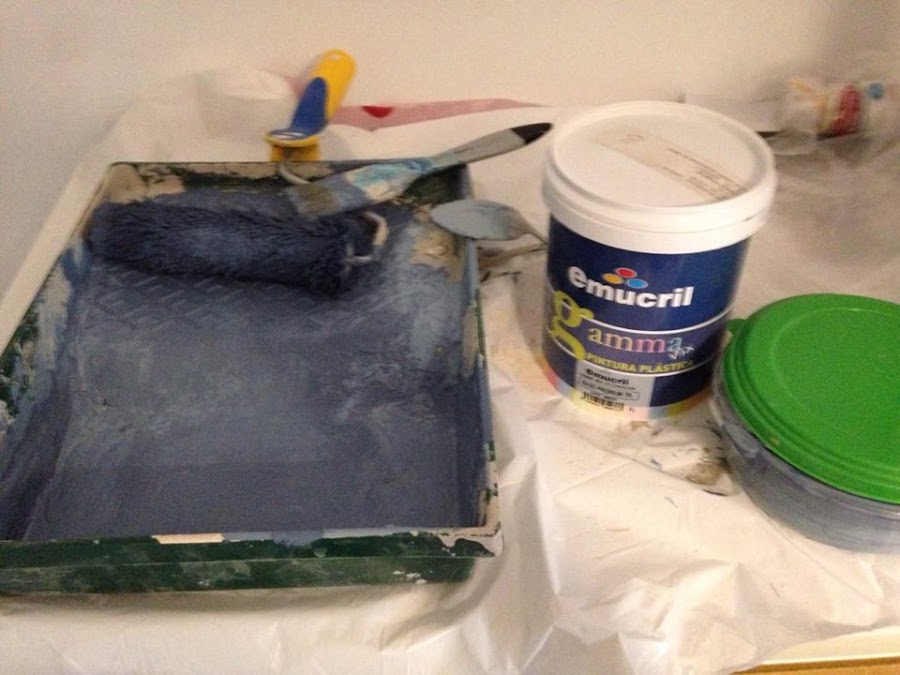 Empezamos por arriba con el color más clarito!!! (yo no me tuve que preocupar de manchar otras paredes porque como estamos de obras una de las cosas que haremos es pintar el resto del dormitorio de blanco.