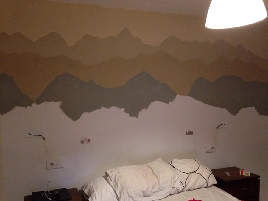 Aquí con el último color! me falta repasar el filo, poner las lamparas, cambiar los interruptores y pintar el resto del dormitorio pero prometo fotos mejores con el resultado final! y espero que el paso a paso para pintar estas montañas os haya sido útil!!