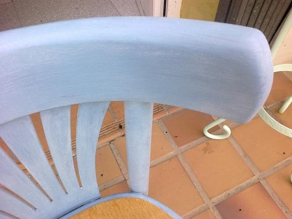 La cera podéis extenderla más o menos según el resultado que busquéis. En mi caso la extendí después más de lo que se ve en la foto, que si no me iba a quedar una silla demasiado blanca. Además, al extenderla iba aplicando a la vez en algunos sitios pequeñas cantidades para incidir en los surcos dejados por el pincel y conseguir más textura.