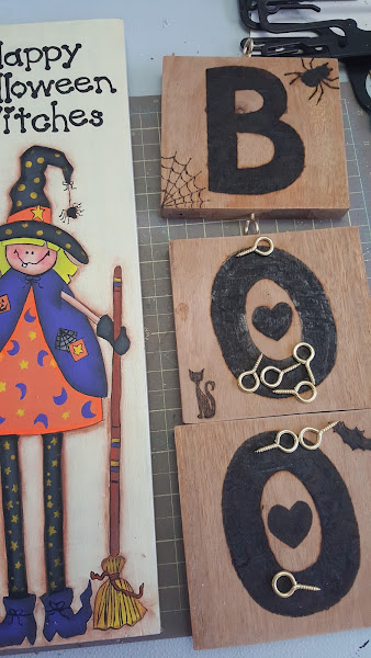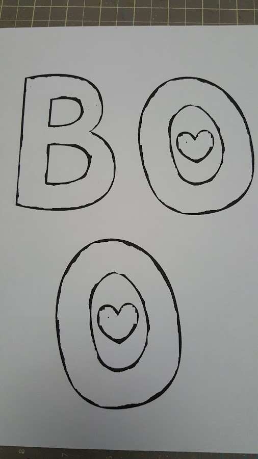 Imprimí 3 letras para completar la palabra BOO y las transferí a las tablas con papel transfer