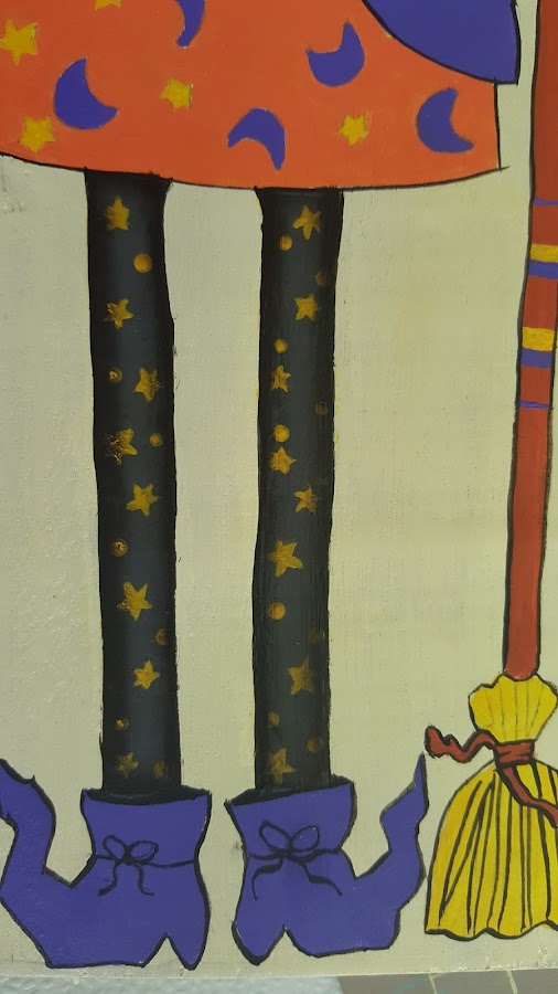 Para que coincidiera con el tamaño de la tabla le alargue las patas y la escoba con el programa "paint"