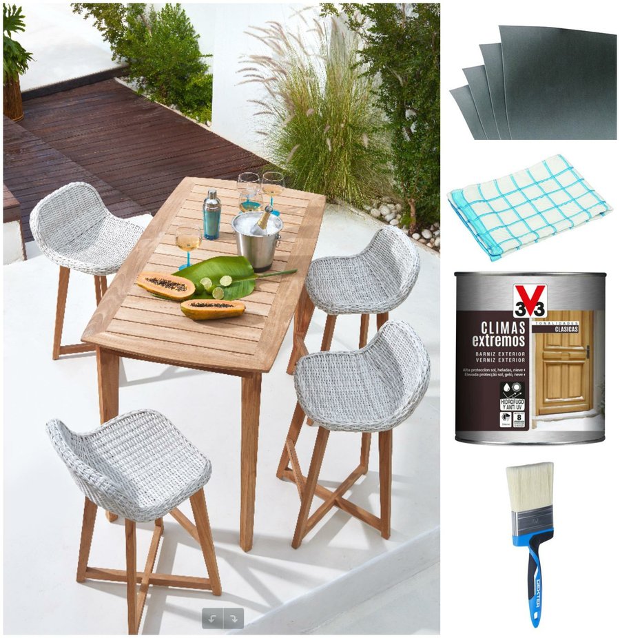 Resulta muy importante tratar los muebles de madera del jardín para hidratarlos en profundidad y evitar que el paso del tiempo los deteriore en exceso. Con este fin, empezaremos limpiando cada pieza con agua y jabón. Seguidamente, lijaremos y eliminaremos los restos de polvo con un paño ligeramente humedecido. Tras una capa de barniz, la madera recuperará su color y brillo, a la vez que protegeremos nuestros muebles de la mejor forma.