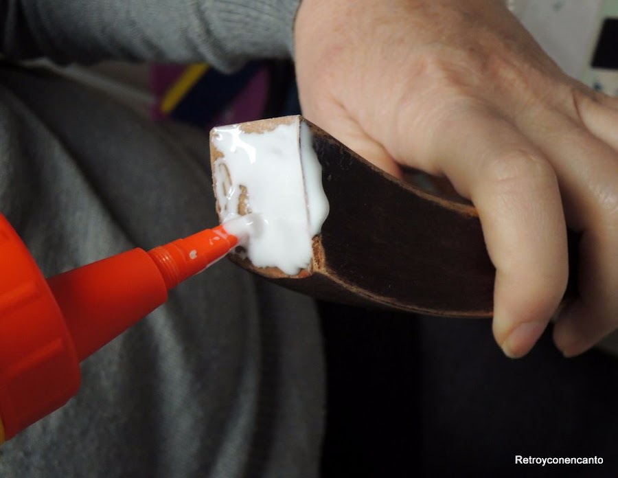...., y la unimos por detrás con la pistola de silicona a la estructura compuesta con los dos brazos.