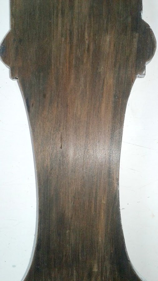 Una capa gruesa y 15 minutos después solo pasando una espátula ya había logrado tener el color natural de la madera.