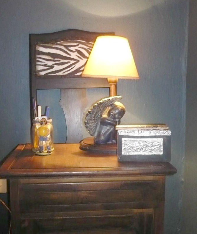 Asi como lo ves en la foto lo tuve años,sin ninguna función a no ser decorativa detrás de la mesa de luz de mi marido.