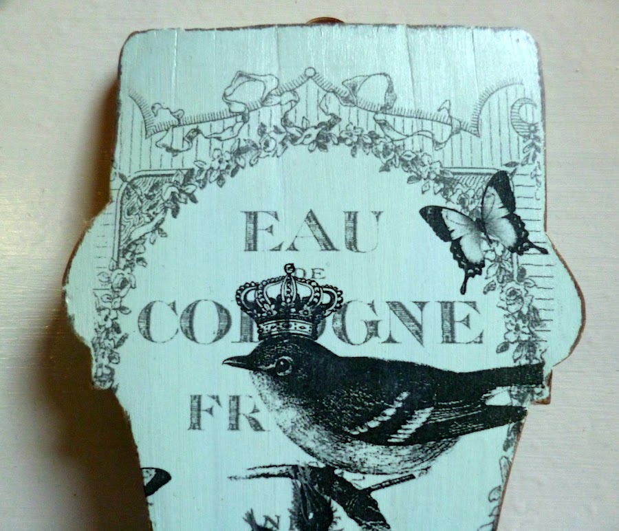 Pero como para que no quede así nomas hice una tranferencia de una lámina francesa,y me encantó como resalta sobre el pastel de la base.