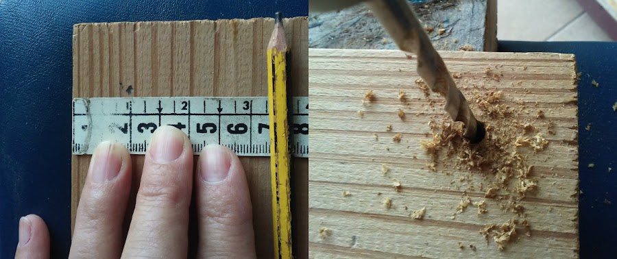 Es importarte medir 2 cm desde los bordes de la madera cuando perforen para hacer el agujero por donde pasarán los hilos.