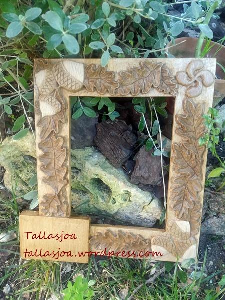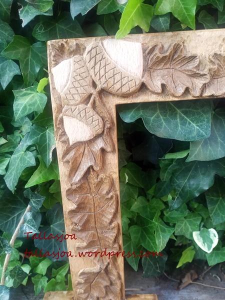 Como veis el diseño es similar al del espejo que os he mencionado, hojas de roble acompañadas de bellotas y un lauburu en la esquina superior.