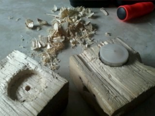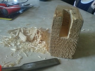 El siguiente paso es marcar el espacio donde colocaremos una caja de fósforos. Hacemos el hueco con la ayuda de un formón.