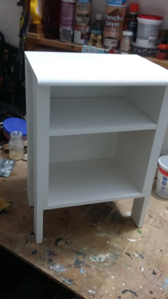 6. Decidí que fuera pintura acrílica por que es fácil de aplicar y el acabado es bueno si se hace con paciencia y de la forma correcta. Le di dos manos de pintura con rodillo para las partes más amplias y con brocha pequeña para los rincones y bordes, contando la parte inferior de las patas para evitar que se lastimaran porque son de triplay, e igual hice con las repisas, excepto en los bordes donde quedarían pegados a las paredes interiores del buró y asegurar que agarre el pegamento. A la parte superior le di tres manos para que dure más la pintura.