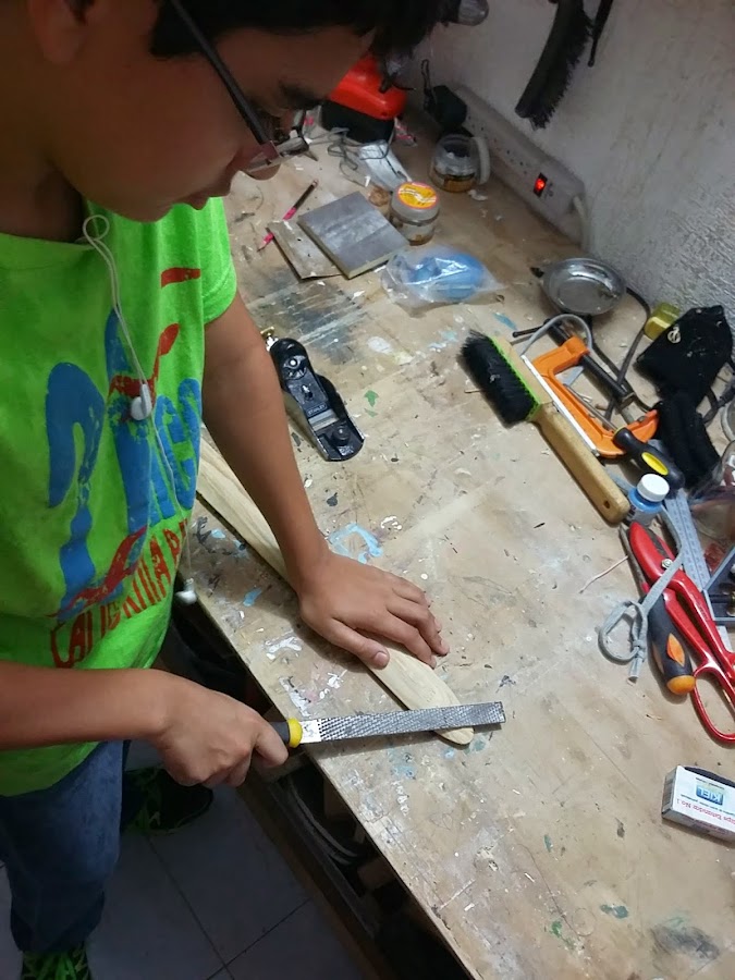 10. Habiendo terminado la ardua y desgastante labor del cepillado, ahora venía la ardua y desgastante labor del lijado. Ya para este momento el pobre muchacho ya estaba agotado, pero le dije que lo turnaríamos y así hicimos. Obvio acabé haciendo yo la mayor parte del trabajo, pero no dejé de felicitarlo por su esfuerzo