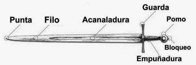 2. Lo segundo importante era tratar de distinguir las partes de la espada para hacerla lo más realista posible. Aquí encontramos una descripción breve pero muy ilustrativa