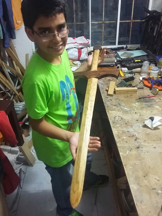 Supongo que todos los que leen este Blog crecimos leyendo libros o viendo películas o imaginándonos tomando los papeles de Piratas, Vikingos o Caballeros Medievales, con escudos, espadas y armaduras. Imaginamos batallas, rescates o incursiones en tierras enemigas y para tal efecto buscábamos cualquier artilugio con tal que pereciera una espada o un arco o una lanza. De ahí la inquietud de mi hijo de tener una espada, un proyecto que aplacé por otras cosas y que en cierto momento se acercó él para pedírmelo y tuvimos ambos la disposición de llevarlo a cabo. Y no fue tan fácil como él pensaba