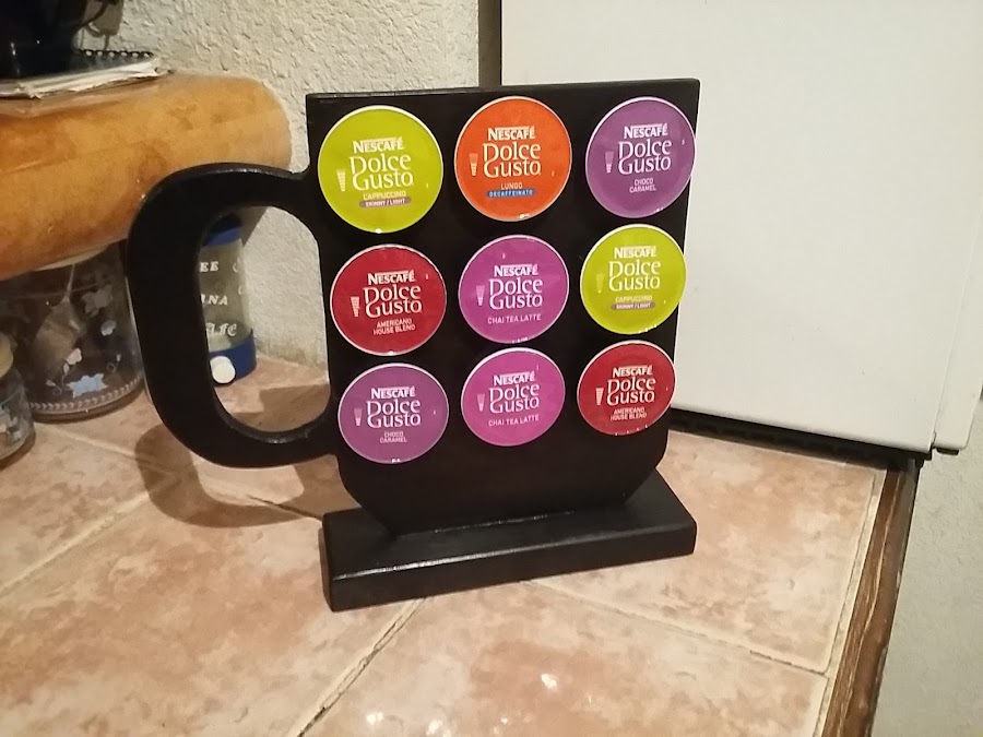 Esta semana fue cumpleaños de mi padre y con la premura del tiempo y las múltiples obligaciones apenas pude pensar y prepararle un regalo. Él es amante del café y tiene tiempo que compraron una máquina Dolce Gusto de Nestlé que usa frecuentemente. Las cápsulas las guarda en otra habitación y siento pena cada que me invita una taza que tenga que ir a la otra recámara por ellas; así que pensé, facilitarle la tarea con un práctico soporte para cápsulas
