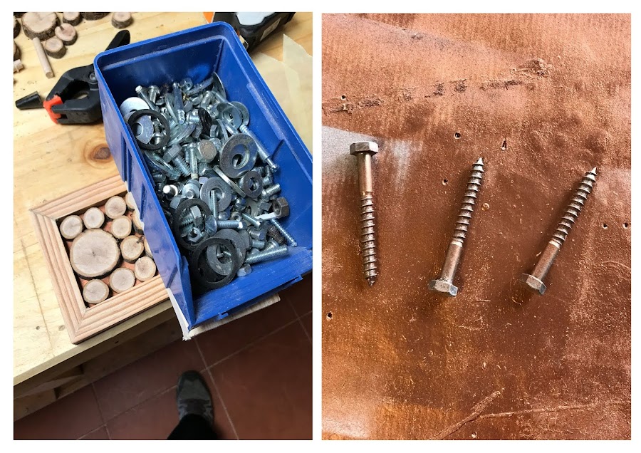 Además, para colgar las llaves, usé unos tornillos y quise darle un toque a óxido y con el mismo spray efecto cobre le fuí dando pequeños toques sin cubrirlos enteros.
