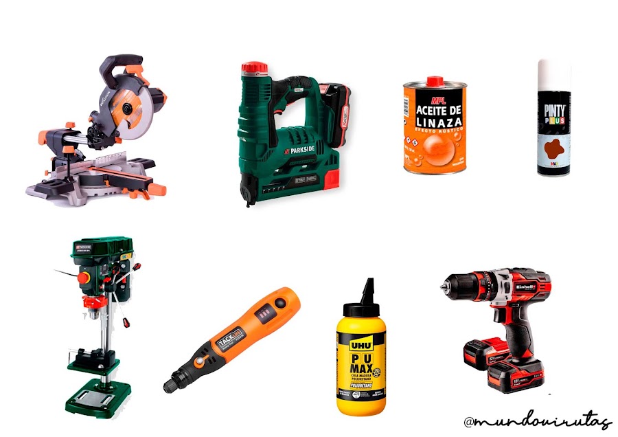 Para este proyecto utilicé 56 tornillos, un trozo de madera de pino y unos listones.