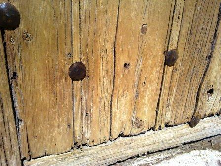 Puerta doble de madera bajo lavabo. Fabricada en madera de pino recuperado procedente de embalaje.