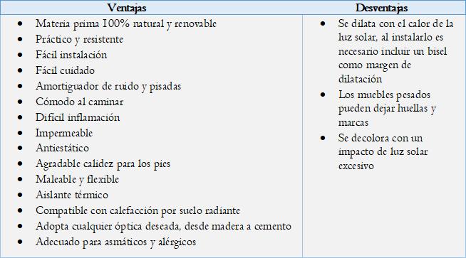 En la siguiente tabla encontrará una visión general de las numerosas ventajas y algunas desventajas del corcho: