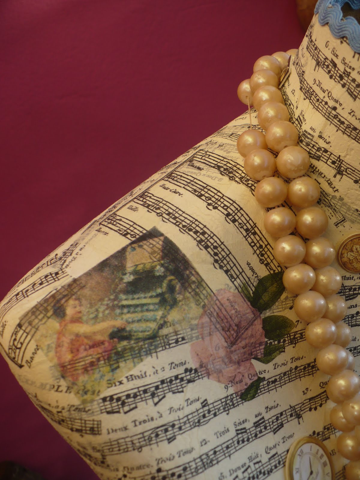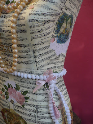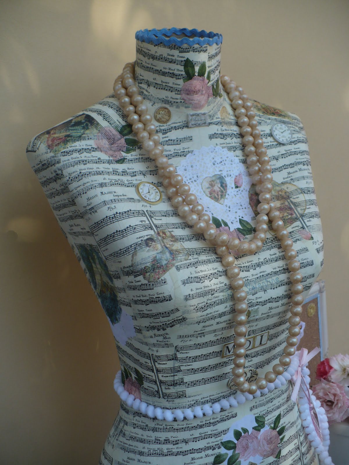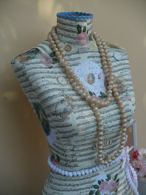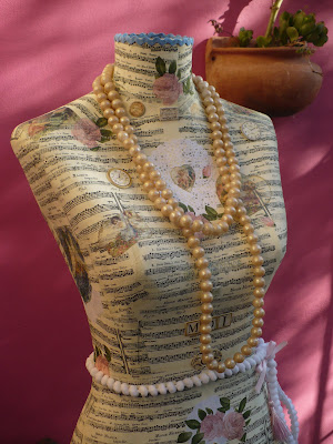 Incluye detalles de pasamanería, letras vintage y relieves. No incluye collar de perlas.