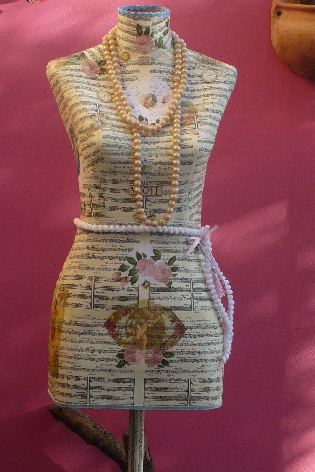 Medidas: largo del torso 67cm y el pie 90cm, se puede ir regulando la altura en caso de que desees colocarle un vestido.