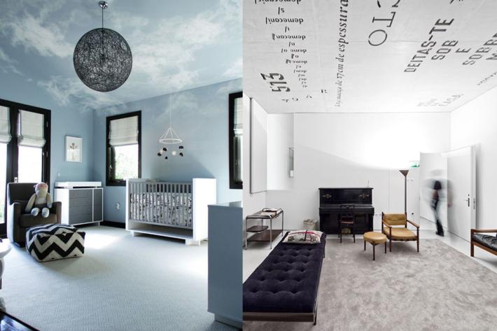 La opción más sencilla, económica, y apta para todas las estancias es pintarlo. Si se trata de una estancia pequeña con el techo bajo, es mejor que las paredes y los techos tengan el mismo tono, pero si el techo es alto, se puede optar por hacer un cambio de color respecto a la pared para dar contraste, ya sea un tono más claro, o más fuerte o, incluso, un color vivo. Otra alternativa es pintar el techo con algún dibujo, como un sol, o unas nubes para dar un aire infantil, o colocar un vinilo.