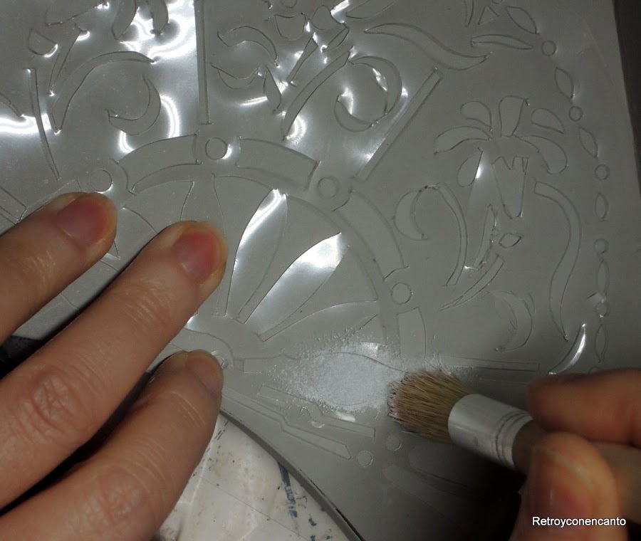 Nos decantamos por una plantilla de un abanico, para decorar con este motivo la parte inferior de nuestra ménsula.