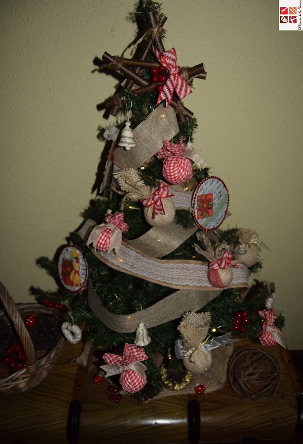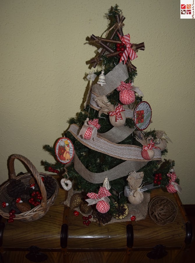 ahhhh se me olvidaba, la bolita de cuerda de yute que está al lado del árbol la hizo mi hija , un diy que se hace con un globo, pegando la cuerda alrededor y una vez seco se pincha el globo y queda una bola muy chula...esta la pobre no quedó muy bien, pero yo sé que la hace ilusión que la ponga.