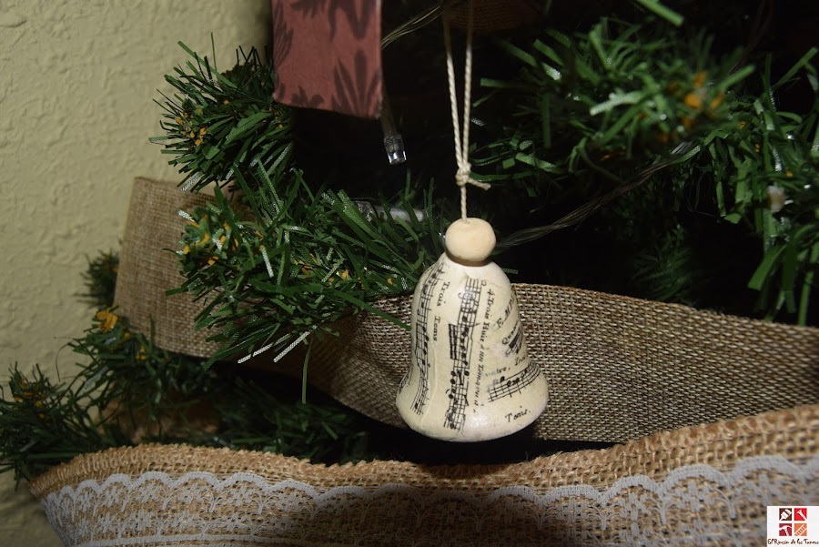 Estas campanas eran de un viejo colgador que se me había roto , pero...tienen su segunda oportunidad, he hecho decoupage, una mano de barniz mate al agua y listas para colgar en el árbol.