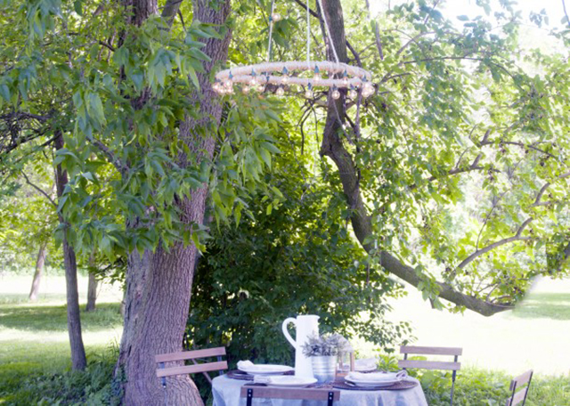Ya sea que lo cuelgues sobre una mesa de comedor o incluso sobre una zona de estar, este sencillo "candelabro" hecho con amor iluminará tus noches.