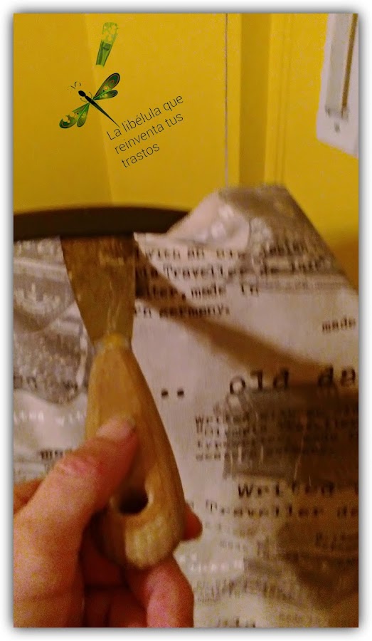 Simplemente cortar el trozo que necesesitemos para el tapizado, un trozo generoso para remeterlo por dentro de la silla, y simplemente con una rasqueta, vamos metiendo la tela por dentro, estirando de aquí y por allá. Y no hay más!