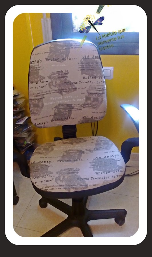 Y después del momento zen, quiero enseñaros un apañillo que he hecho en casa. Y es que tengo una silla de escritorio que estaba ya la pobre un poco fea no, lo siguiente, pero como nos pasa muchas veces, no se rompía, estaba perfecta pero el tapizado tenía un agujero y estaba muy sucio, no sabía como limpiarlo. Así que investigando por las redes encontré dos soluciones, la primera muy fácil, la 2ª un poco menos, así que empecé por el plan A, y no me llevó mas de 30 min., no os lo creéis? Ainsss mujeres de poca fe...