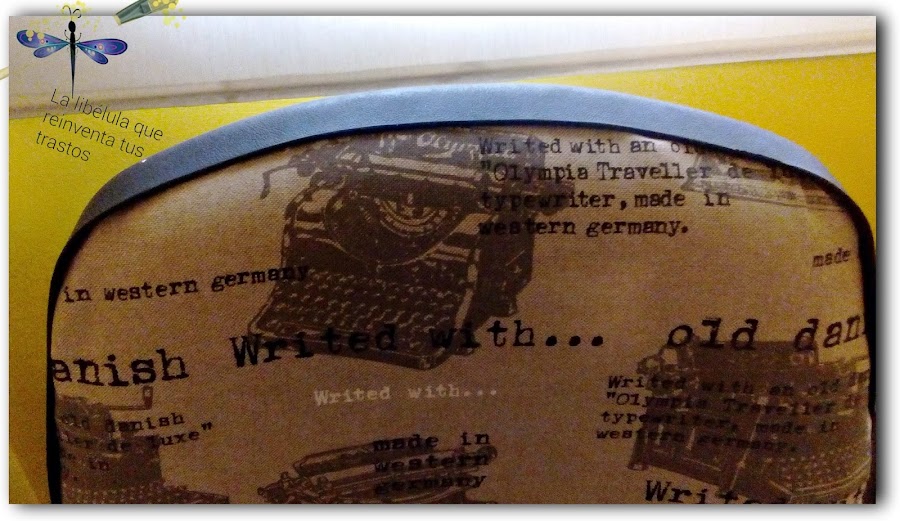 Pues simplemente hay que elegir una tela que nos guste, y que sea gordita, para tapizar o tipo loneta, como la mía. La compré hace un tiempo porque me encantó el estampado con máquinas de escribir antiguas y textos. Y ya era el momento de estrenarla!