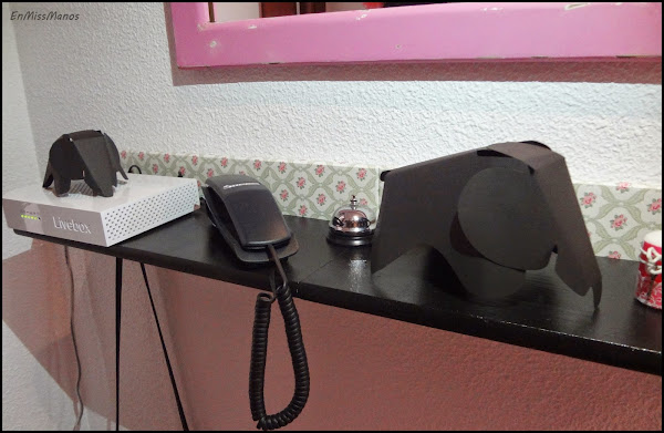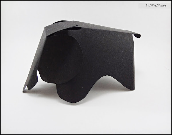 También me hice en cartulina negra un par de elefantes Eames. Ya que no tengo niños para poder comprarles ésta silla de diseño tan mona, me he conformado con hacerme unas réplicas minis para decorar... :(