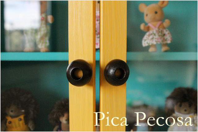 Las dejé con su color porque me gustaba el contraste con el amarillo y el turquesa y ponerlas fue tan fácil como encajarlas en los tiradores originales.
