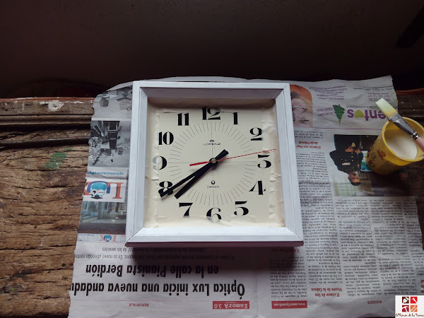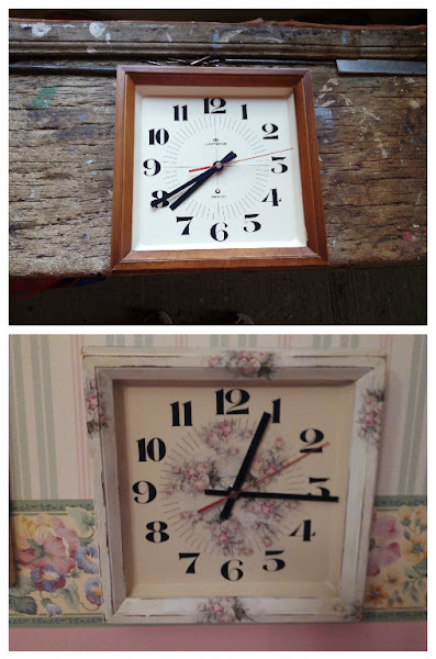 reloj tuneado con pintura a la tiza y decoupage