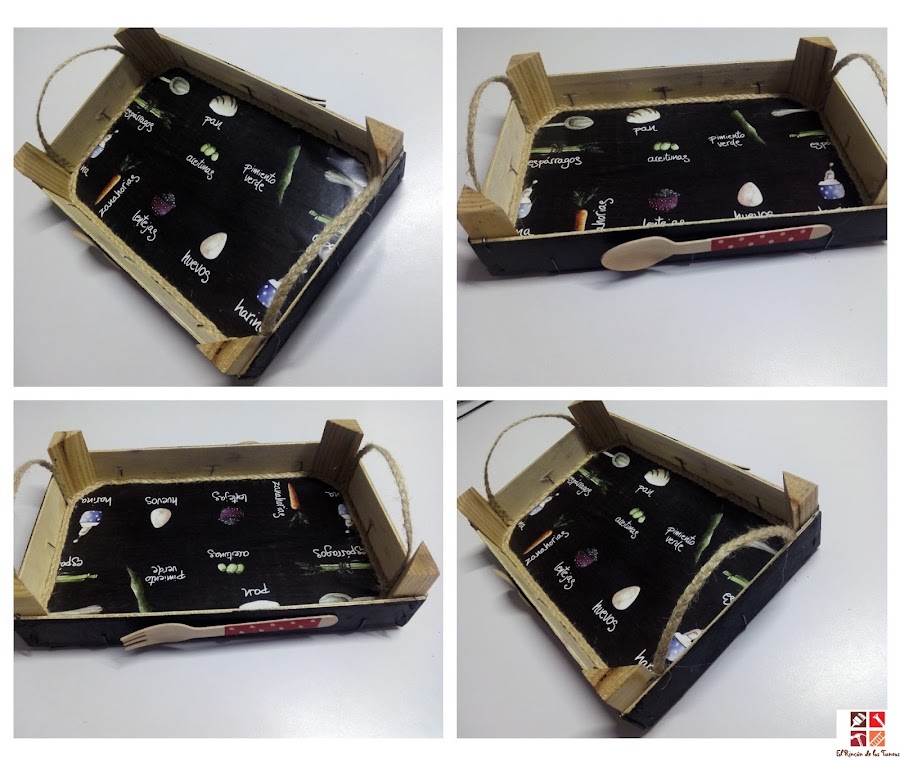 Y vamos con la segunda bandeja, esta vez la he hecho , como no, de una caja de fruta, las cajas más socorridas y tuneadas por nosotras.