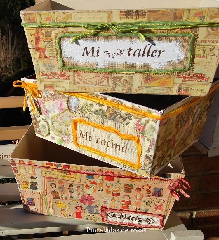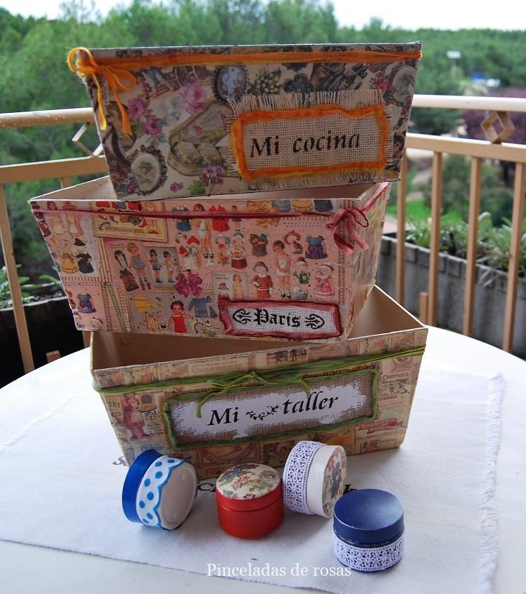 Esta tres cajas están decoradas con con distinto materiales… con lo que la imaginación que tengas en ese momento