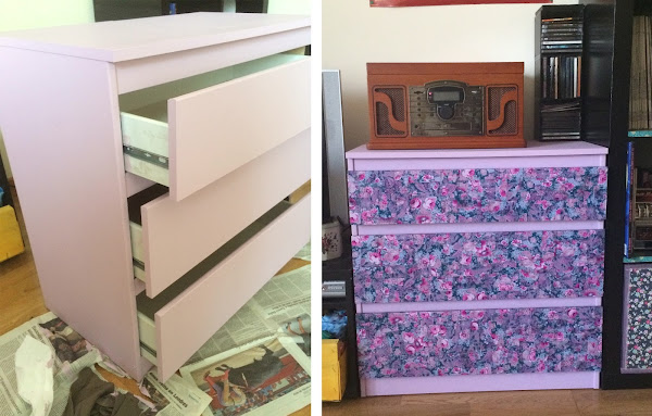Me gusta mucho Ikea pero cada vez que compro algún mueble allí lo veo por todas partes, ¡hasta en las series de televisión utilizan muebles de Ikea! Así que me dedico a hacerles pequeños cambios, la última en sufrir al pasar por mis manos ha sido la cómoda KULLEN de tres cajones que tengo en el salón de mi casa, 30 euros muy bien invertidos: