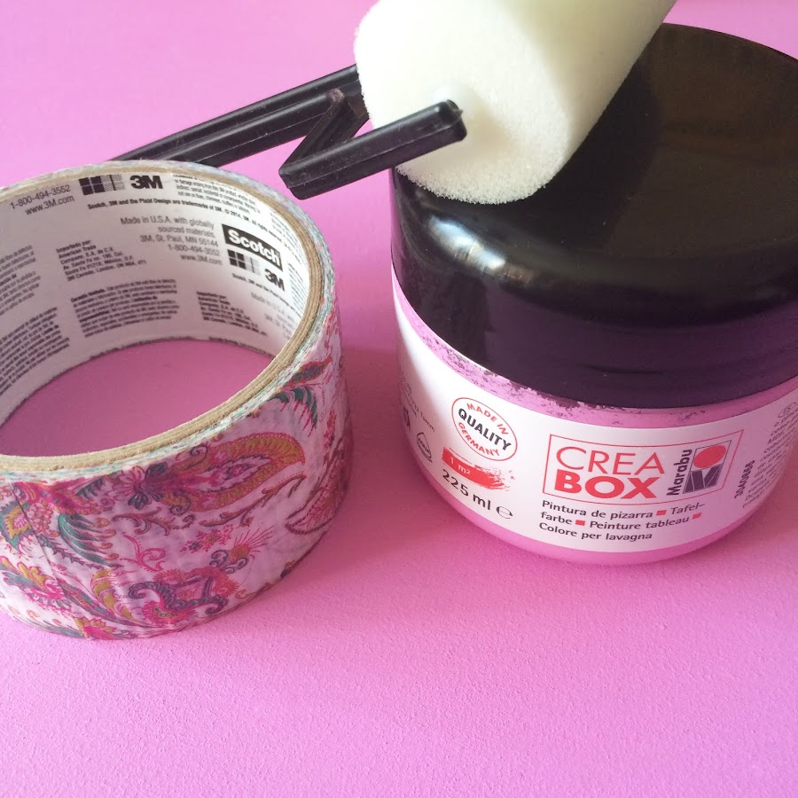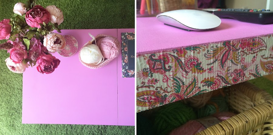 Cuando hayas terminado simplemente pega una tira de washi tape por el borde de la mesa, trata de que el diseño del washi tenga algo que ver con el color de la chalk que has elegido y el color de base de mesa, un color en común es una buena combinación, por ejemplo. Yo tuve si o si que colocar dos cestitas debajo de cada mesa para las toneladas de ovillos de lana que tengo, era un espacio que no podía desaprovechar...