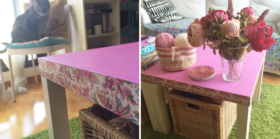 Cuando llegué a esta casa los únicos muebles que había eran dos mesas LACK blancas. Yo no soy especialmente partidaria de estas mesas porque me parece que ocupan mucho (mi casa es muy pequeña) y encima no tienen cajones (yo siempre SIEMPRE ando escasa de espacio para almacenaje)... pero ya que estaban aquí ¡algo había que hacer con ellas!