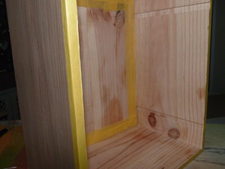 Lo primero que hice, después del lijado, fue aplicar Deco Lasur de Xylazel en color roble rústico a toda la parte exterior, y Blanco Báltico en el interior. El lasur decorativo es un barniz que, además de proporcionar una duradera protección a la madera, nos permite elegir entre una amplia gama de colorido: desde distintos tonos de madera, hasta verde, azul, rosa, etc. Además, se le pueden aplicar distintos efectos, dándole a nuestra pieza un acabado perlado, cobrizo, etc., y dejando ver en mayor o menos medida la veta de la madera en fución de las capas de lasur que se apliquen.