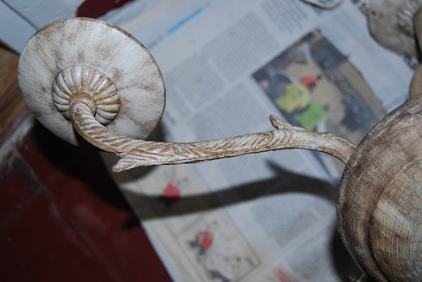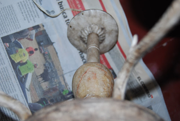 La roseta superior y el lagrimón de mármol encintado. El nivel de envejecimiento es a gusto del consumidor. En nuestro caso hemos envejecido a conciencia, nada sutil. Y creo que el efecto ha sido muy positivo.