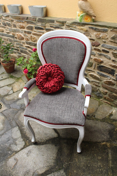 Una pasada de lija, una mano de imprimación blanca y dos de pintura también blanca, una tela gris y, para darle vidilla, una pasamanería roja....