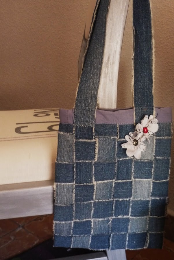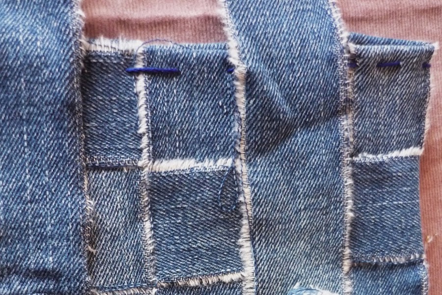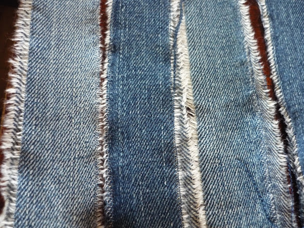 Cortamos todos los vaqueros en tiras de unos 4 cm de ancho