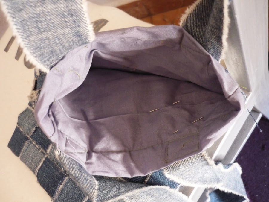Los extremos de arriba doblamos y sujetamos con un hilo para coser los despues con el fondo.
