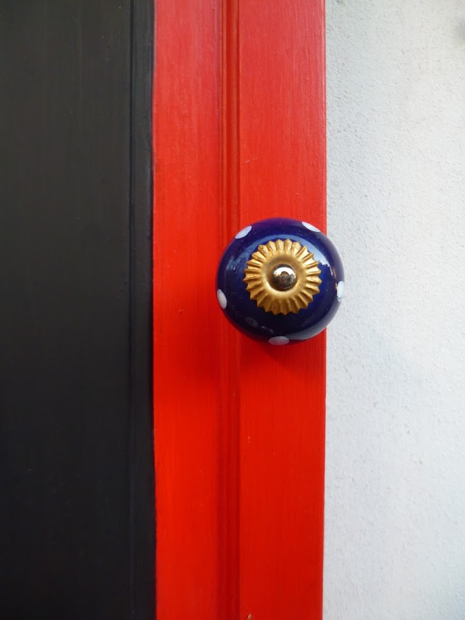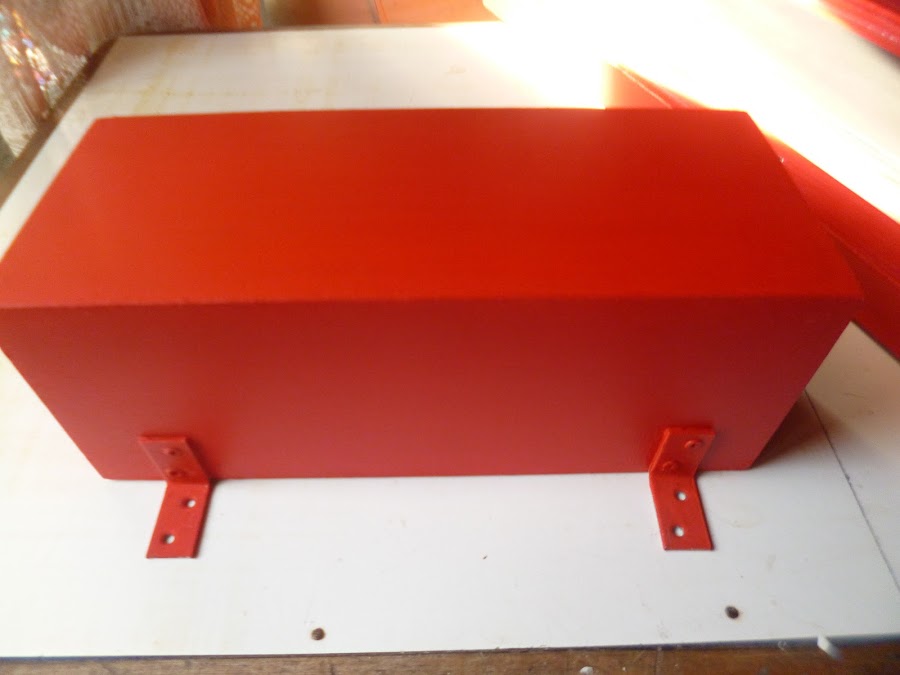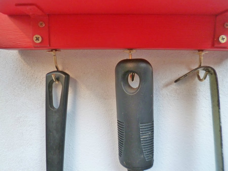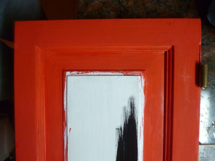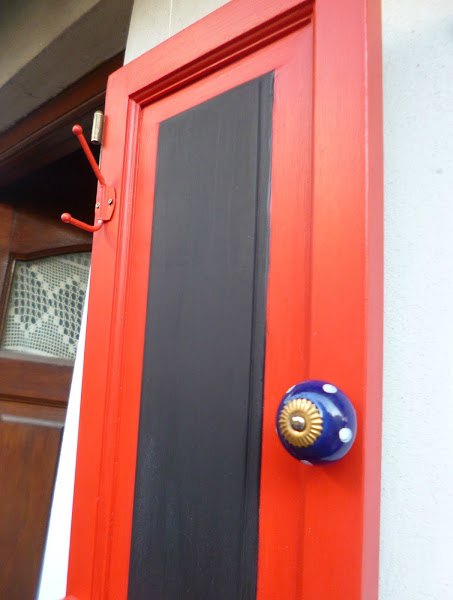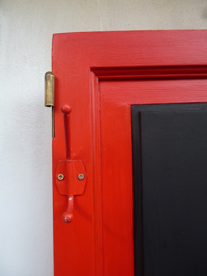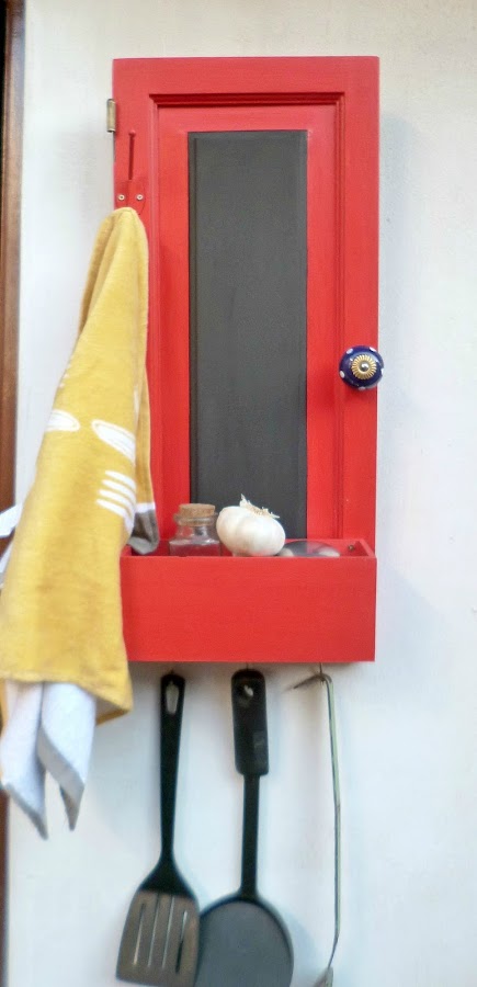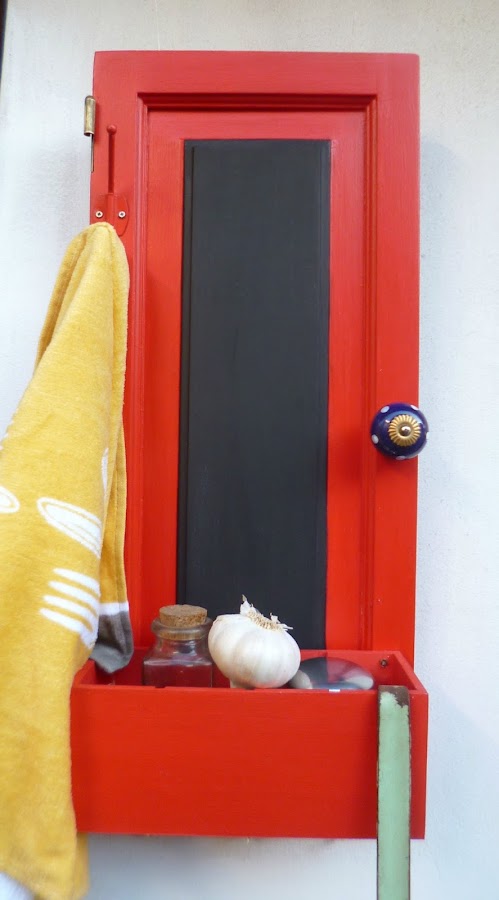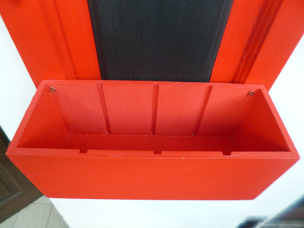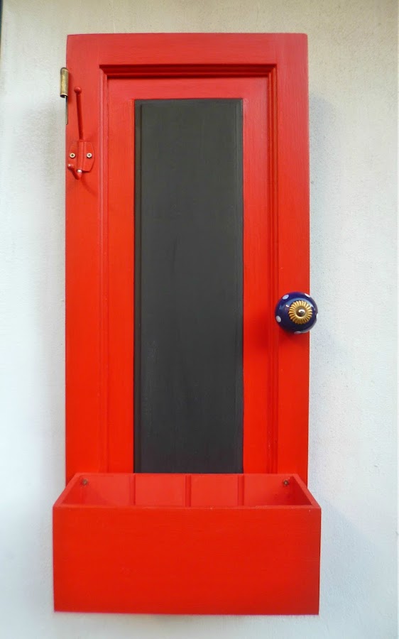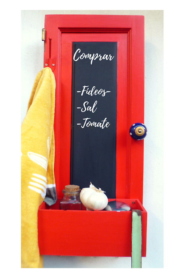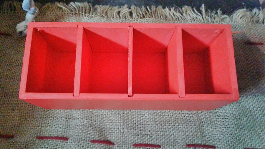 El asunto es que pinté todo de rojo,marco de la puertita,caja de té,divisiones de la misma, eles de y perchita de metal,todo todo de rojo.